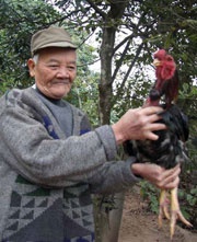 Ông Đỗ Tá Dũng (xóm Ngõ Trại - Lạc Thổ) hiện là người có đôi gà đẹp nhất làng, mấy năm qua đều hiện diện ở hội xuân. Hiện nay, ông và anh con trai Đỗ Tá Sỹ nuôi nhiều gà nhất, đồng thời bảo tồn giống, cung cấp cho bà con trong làng và khách phương xa. “Các cụ tôi truyền lại cho cha tôi, rồi đến tôi và sau này là các con cháu trong nhà đều có ý thức gìn giữ giống gà quý của tổ tiên. Khi đã mê, thích và yêu chúng, cộng thêm trách nhiệm cha truyền con nối thì chẳng bao giờ chúng tôi có ý định không nuôi gà nữa. Bởi thế, cha con tôi cứ sống bên những chú gà cả ngày, chăm sóc và nuôi nấng chúng mà không thấy chán”, ông Dũng chia sẻ.