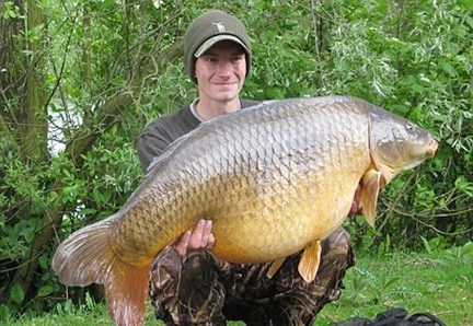 | "Cần thủ" bên con cá chép "khủng" mới săn được. |