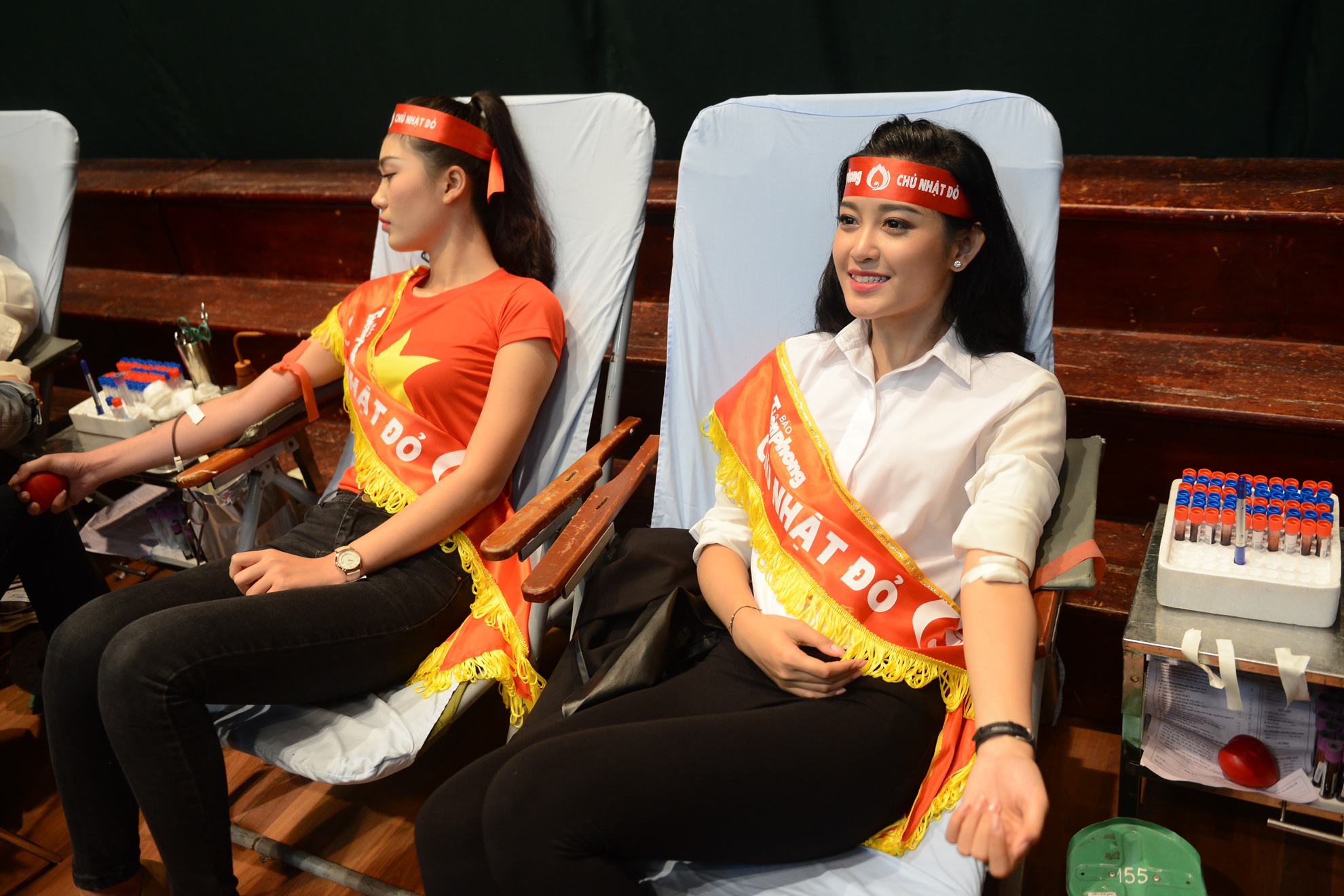 Hoa hậu và Á hậu Việt Nam hăng hái tham gia hiến máu cứu người tại ngày hội 'Chủ nhật đỏ' sáng 25/1.