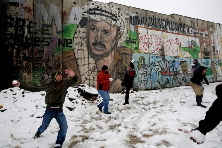 Người Palestine chơi đùa với tuyết ở thành phố Ramallah thuộc khu Bờ Tây hôm 10/1. Đây là trận bão tuyết lớn nhất từng ập xuống Bờ Tây trong 30 năm qua. Ảnh: AP. |