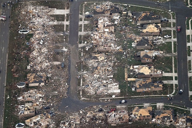 Khung cảnh đổ nát sau khi trận lốc xoáy cực mạnh tàn phá thị trấn Moore, ngoại ô thành phố Oklahoma, bang Oklahoma Mỹ hôm 20/5. Ảnh: AFP. |