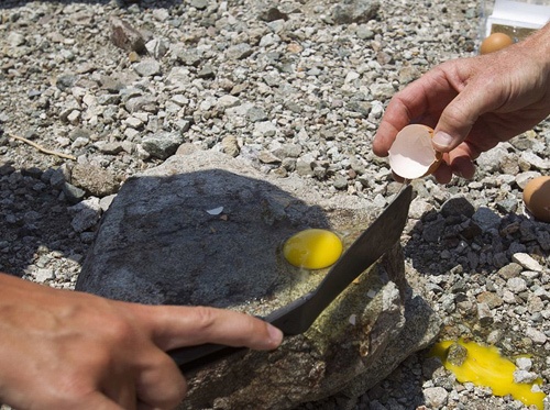 Người Mỹ rán trứng trên đá trong đợt nắng nóng kỷ lục hôm 2/7. Ảnh: Tân Hoa Xã. |