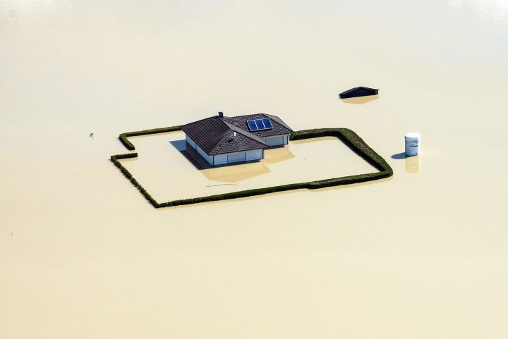 Nước lũ bao vây một ngôi nhà ở thành phố Deggendorf, Đức sau khi vỡ đập sông Danube hôm 5/6. Ảnh: EPA. |