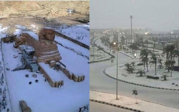 Trận bão tuyết lớn hình thành từ Jerusalem - Israel đang chậm chạp quét qua lãnh thổ của Ai Cập, tạo nên trận tuyết rơi đầu tiên trong vòng 100 năm trở lại đây ở Cairo. Ngày 14/12, nhiều khu vực trên lãnh thổ Ai Cập chìm dưới lớp tuyết dày. Ảnh: Instagram. |