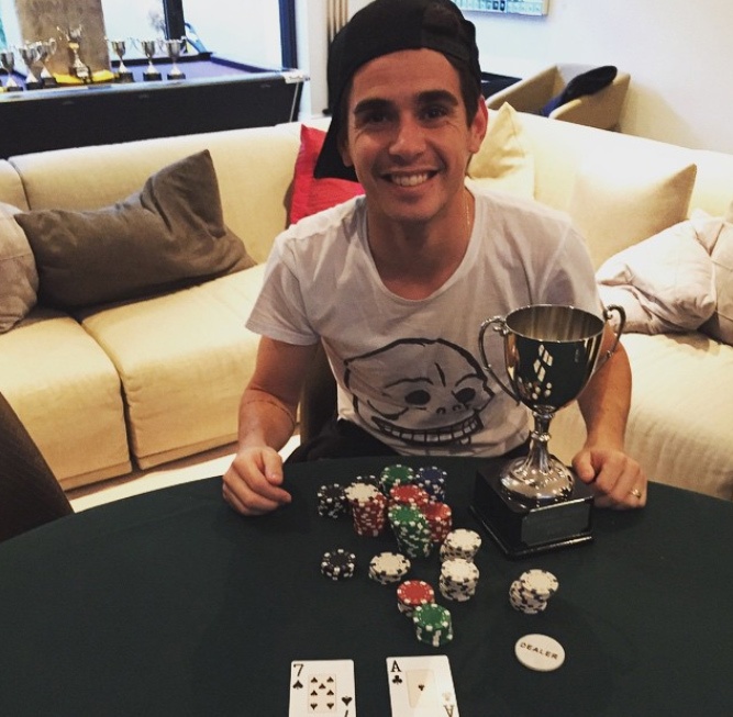 | Oscar ăn mừng chức vô địch sớm trên bàn poker. |