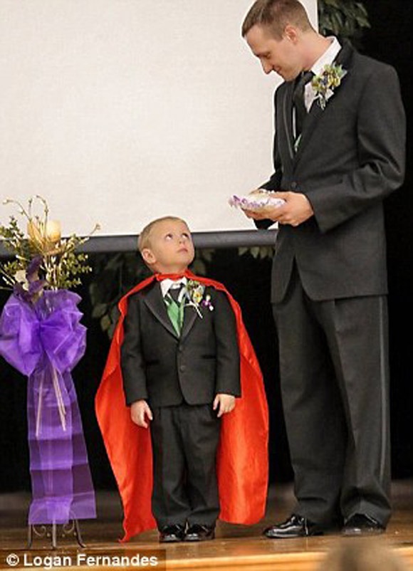 Nhẫn cưới đặt trong một hộp giống dao diện game nấm Marrio và các nhẫn được dán nhãn Player 1 và Player 2. Kal - con trai họ thậm chí còn mặc một chiếc áo choàng siêu nhân và thực hiện nhiệm vụ mang nhẫn cưới. Những bó hoa cũng được tạo ra từ các trang của truyện tranh về Harley Quinn, các phù rể đến giây phút quan trọng đồng loạt phanh áo sơ mi của họ để lộ biểu tượng siêu anh hùng khác nhau: Superman, Batman, Captain America và Green Lantern.