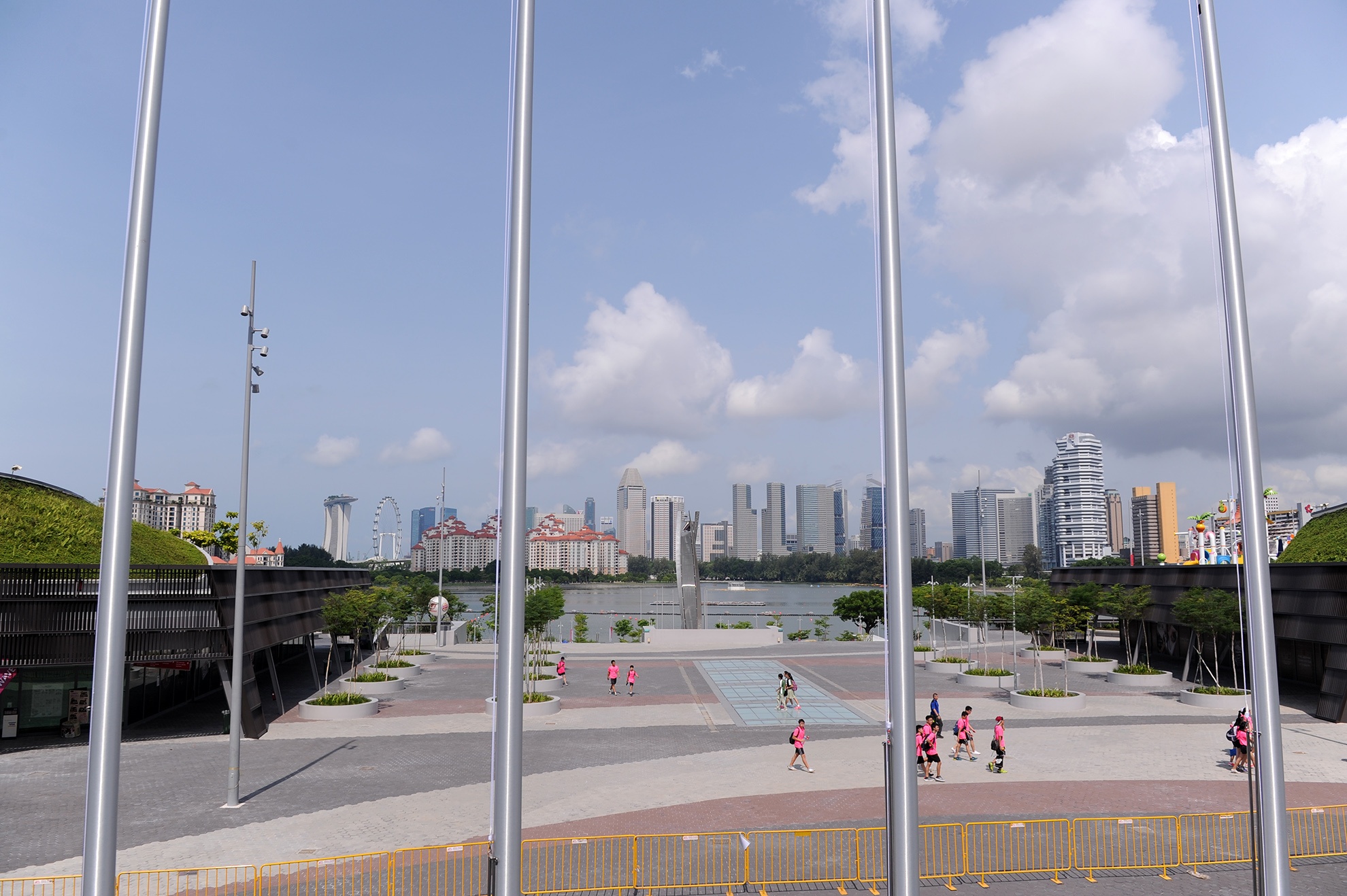 | Sân còn nằm ở vị trí tuyệt đẹp nhìn thẳng vào trung tâm Singapore, Marina Bay Sands. |