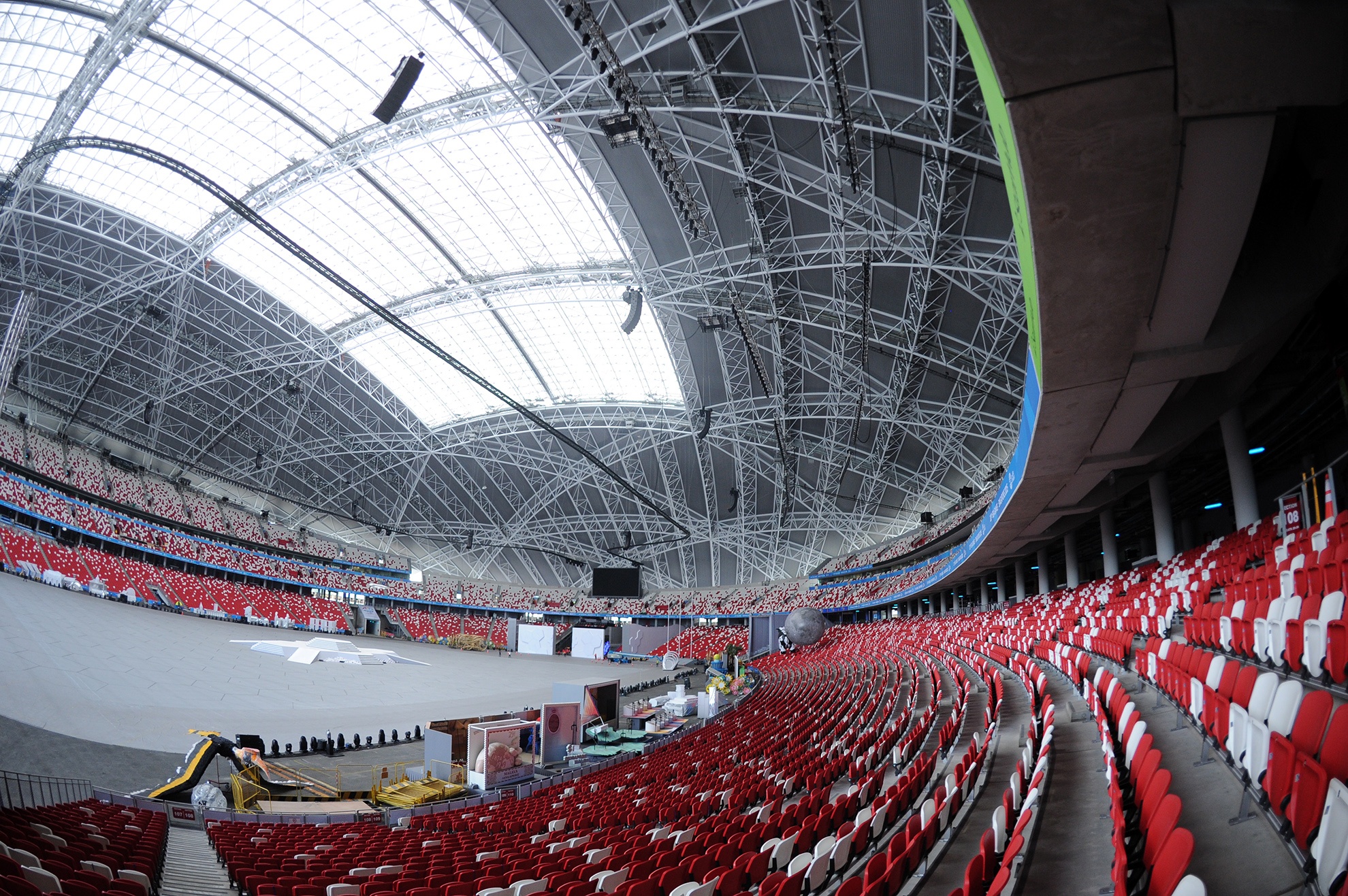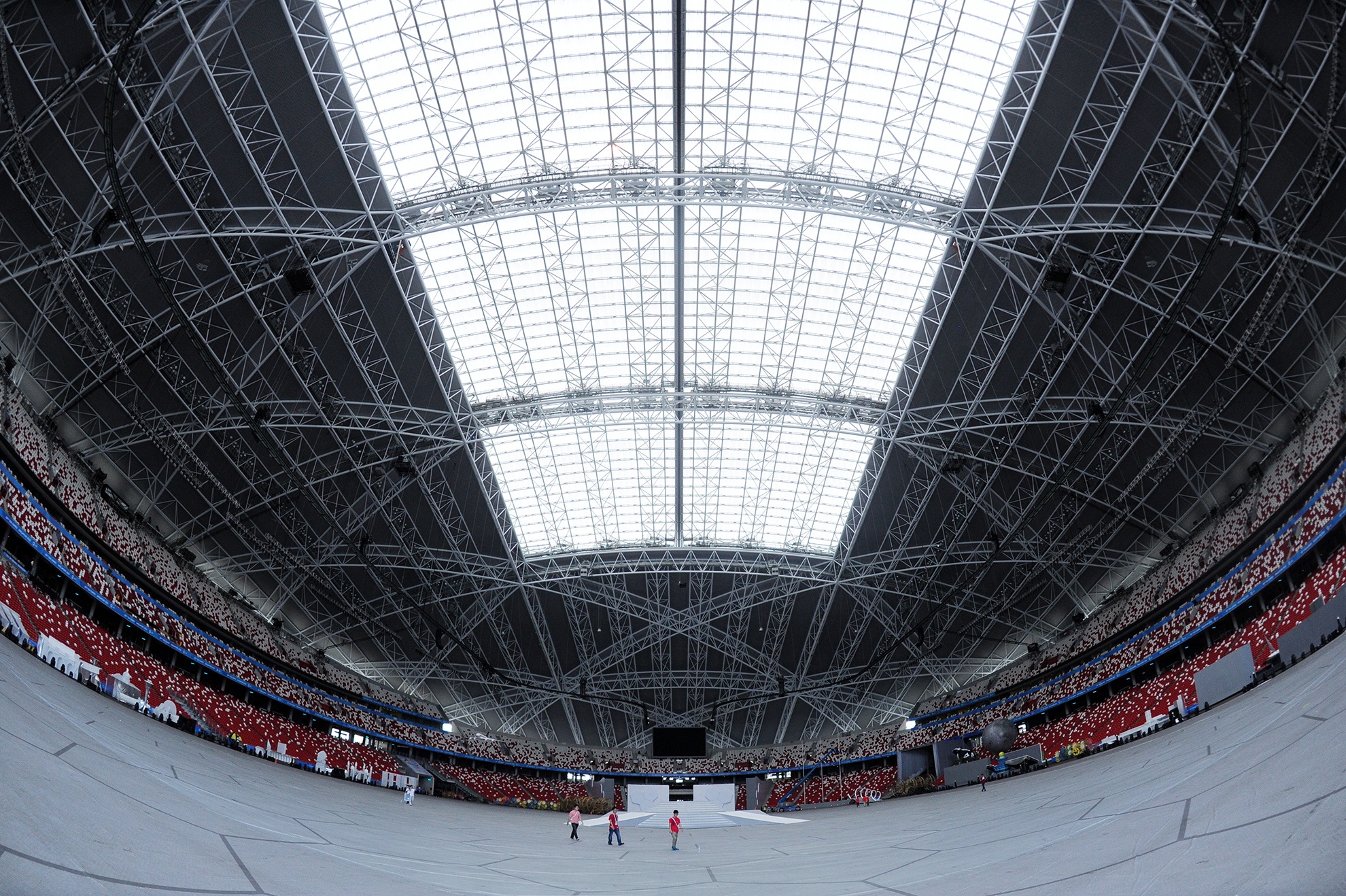 | Sân vận động trung tâm là điểm nhấn tuyệt đẹp nằm trong tổ hợp Sports Hub rộng 35 ha và có tổng kinh phí xây dựng lên đến gần 2 tỷ USD, kéo dài trong vòng 6 năm kể từ 2008. |