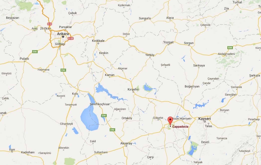 Cappadocia thuộc tỉnh Nevsehir miền trung Thổ Nhĩ Kỳ, cách thủ đô Ankara 290 km. Đây là một trong những kỳ quan nổi tiếng nhất Thổ Nhĩ Kỳ, được UNESCO công nhận là di sản thiên nhiên thế giới từ năm 1985.