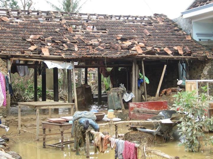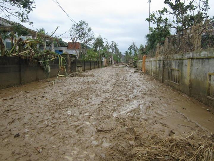| Cả thôn chìm trong bùn, nhà cửa đổ gãy tan tác. Ảnh: Nguyễn Quang Vinh. |