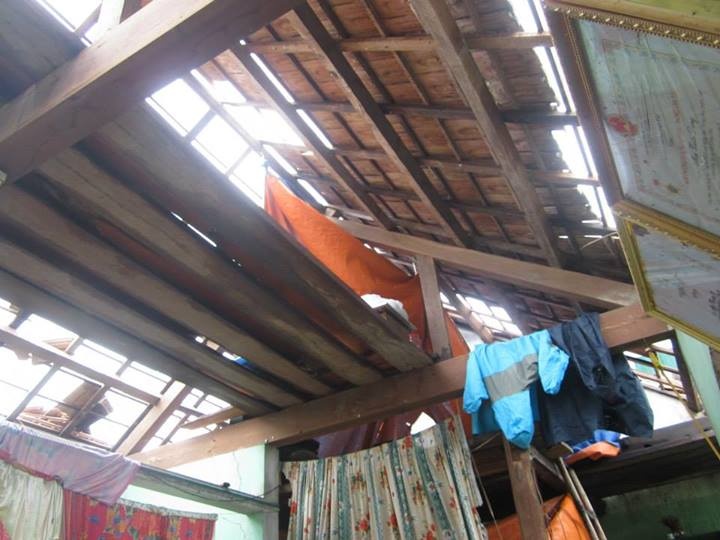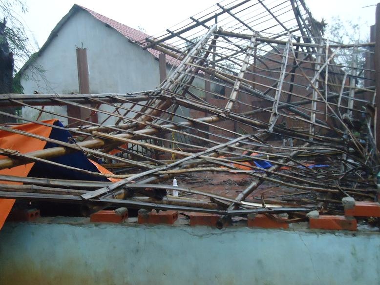 | Hàng trăm nhà dân bị sập sau cơn lốc xoáy. |