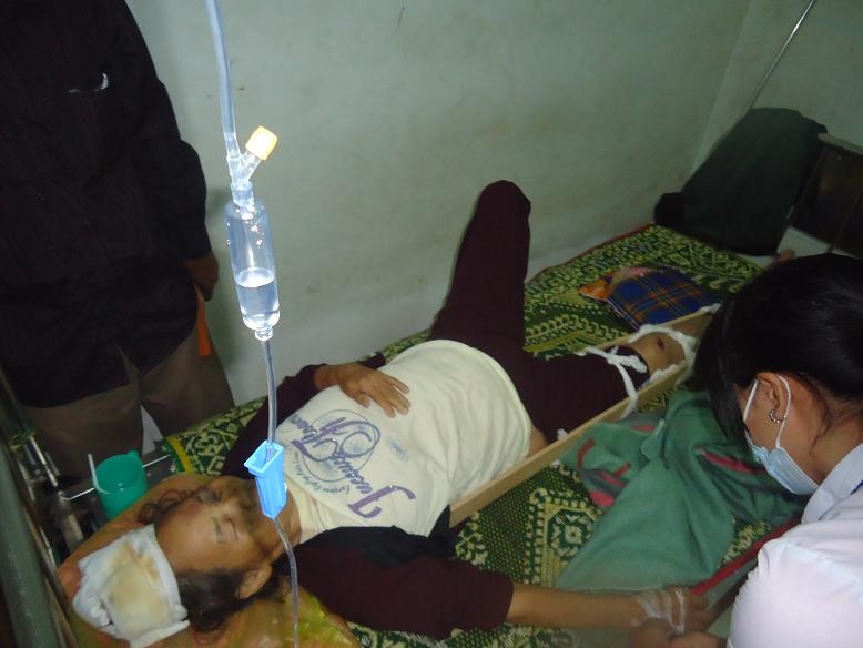 | Hai mẹ con chị Trần Thị Tỷ cùng chồng đang cấp cứu tại bệnh viện. |