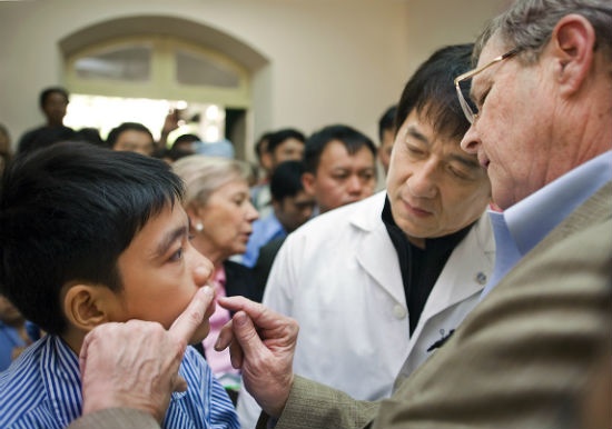 | Thành Long trong chuyến đi từ thiện tại Hà Nội năm 2009 với tư cách đại sứ của tổ chức Phẫu thuật nụ cười. |