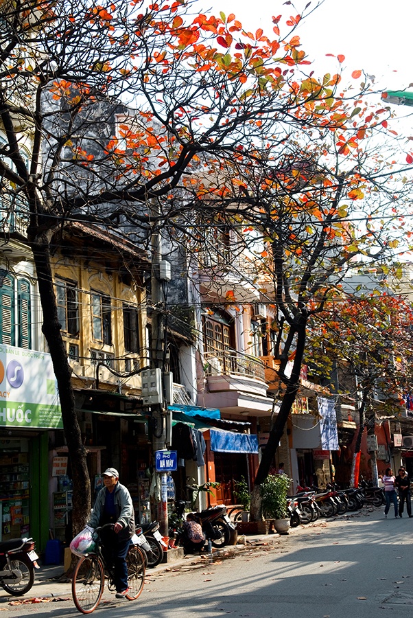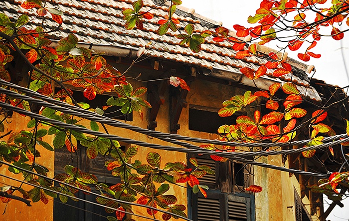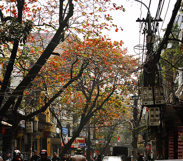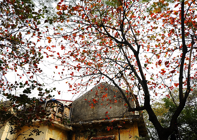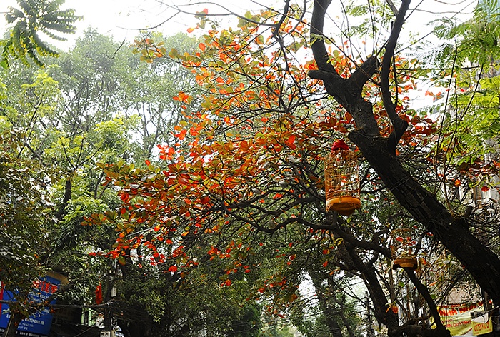 Đi trên các tuyến phố cổ Thủ đô, người dân dễ dàng bắt gặp những chùm cây lá đỏ.