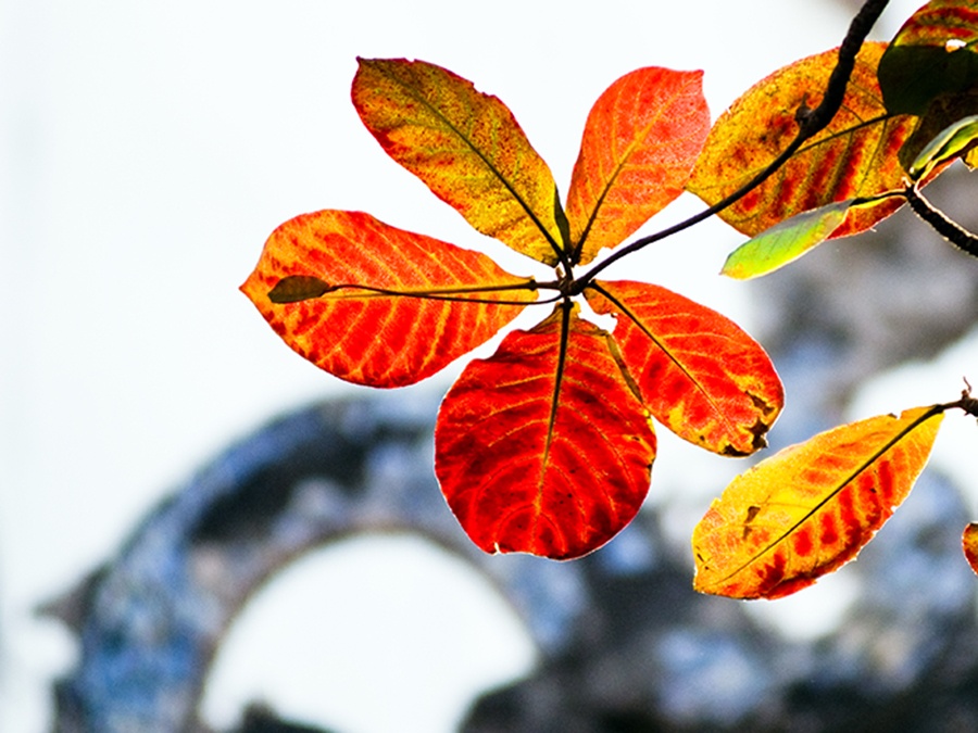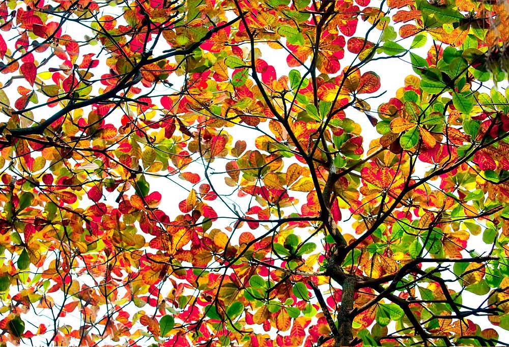 Một vài nhành lá xanh trong chùm lá đỏ tạo nên mảng màu đẹp riêng biệt. Ảnh: Bill Nguyễn.