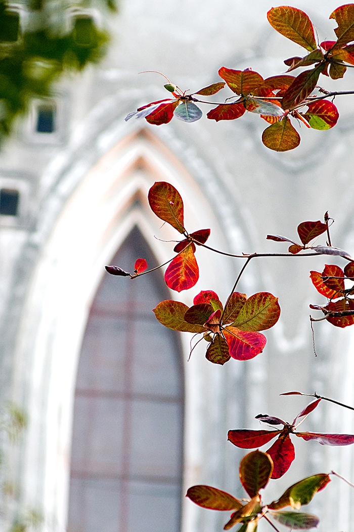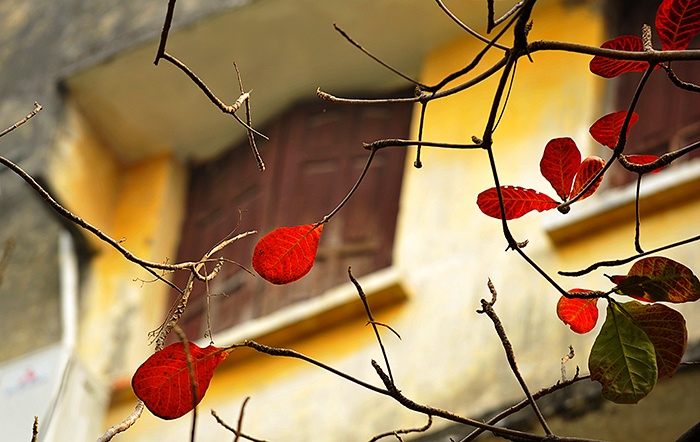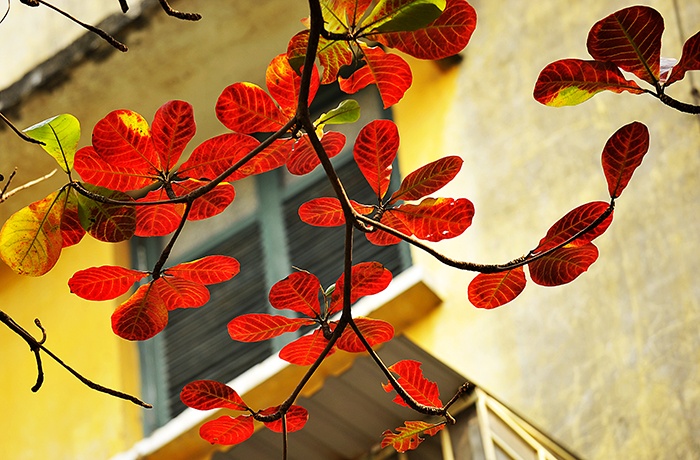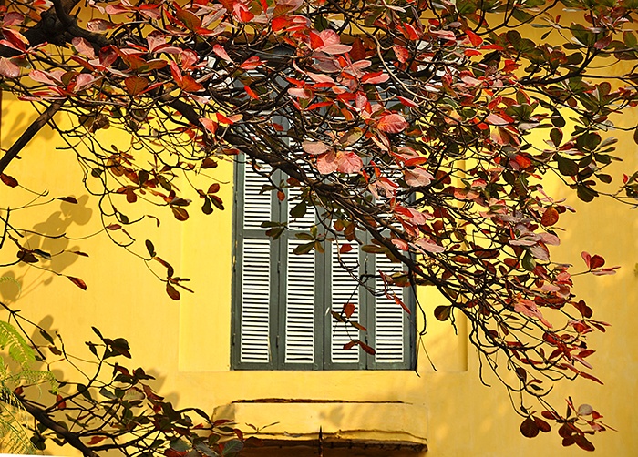 Bàng đỏ thường đẹp khi rung rinh bên những ô cửa sổ...