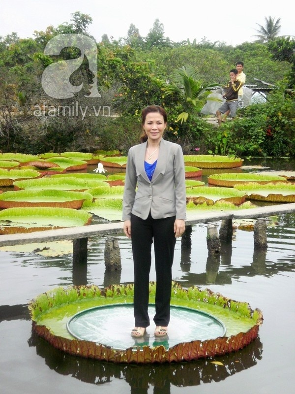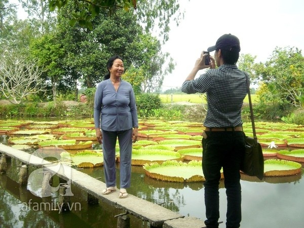 | Chị Trần Kim Huệ (du khách đến từ TP. HCM) cho biết: “Tết về quê thăm bạn bè, nghe kể mà vẫn chưa tin. Đến đây tận mắt thấy mới dám tin là mình có thể đứng trên lá sen”. |