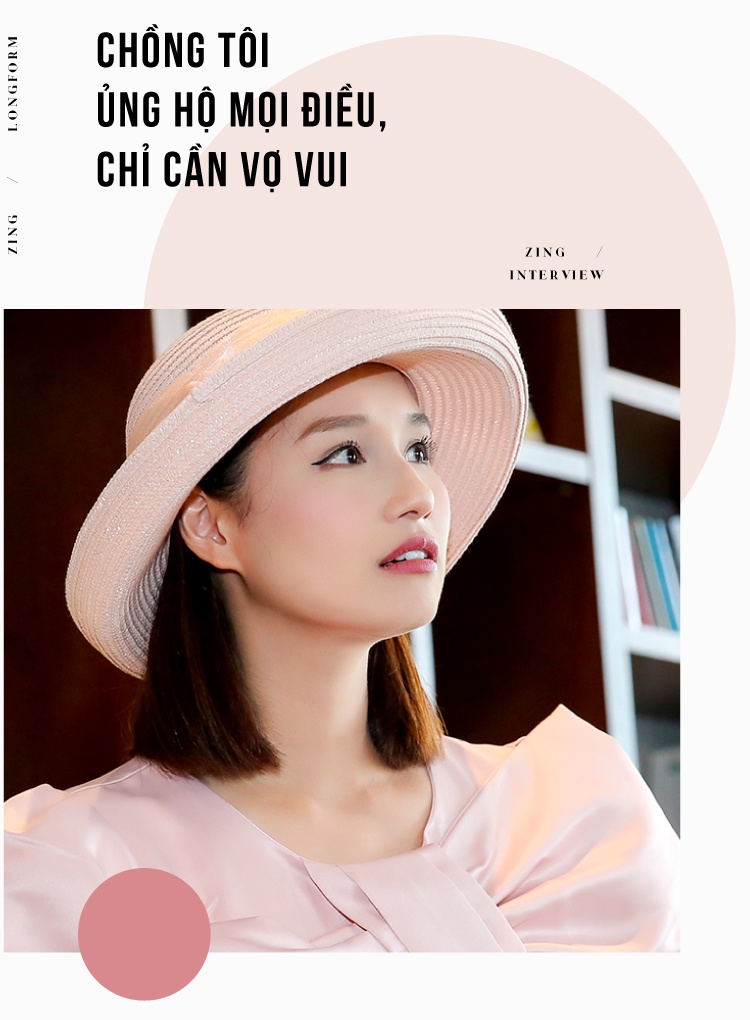 - Đúng là tôi may mắn hơn họ trong cuộc sống hôn nhân. Tôi có người bạn đời, người đồng hành thấu hiểu. Anh luôn ủng hộ tôi trong mọi việc, chỉ cần vợ vui. Điều đó giúp tôi cảm thấy vững vàng trên con đường mình đi. Giống như nếu tôi ngã, hay nếu công việc kinh doanh có thua lỗ, không may mắn cũng không sao, anh sẽ luôn đứng đó đỡ tôi dậy.