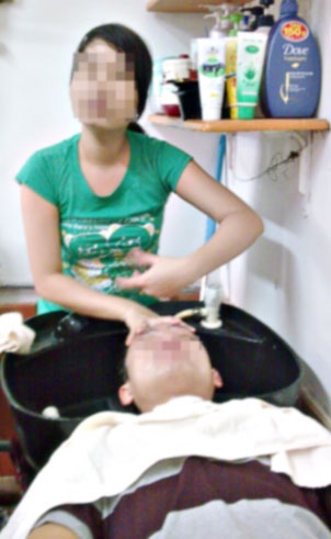 Gội đầu xong, vị khách được mời lên lầu để ngoáy tai. Trong tiếng nhạc nhè nhẹ, du dương, cô gái làm nhiệm vụ bật đèn của dụng cụ chiếu vào lỗ tai của khách. “Anh có cần người bóp chân không?”, cô gái hỏi. Nhờ cái gật đầu, chỉ vài phút sau, 2 cô gái trẻ, đẹp lại xuất hiện để đấm bóp, mát xa dọc hai chân của khách.