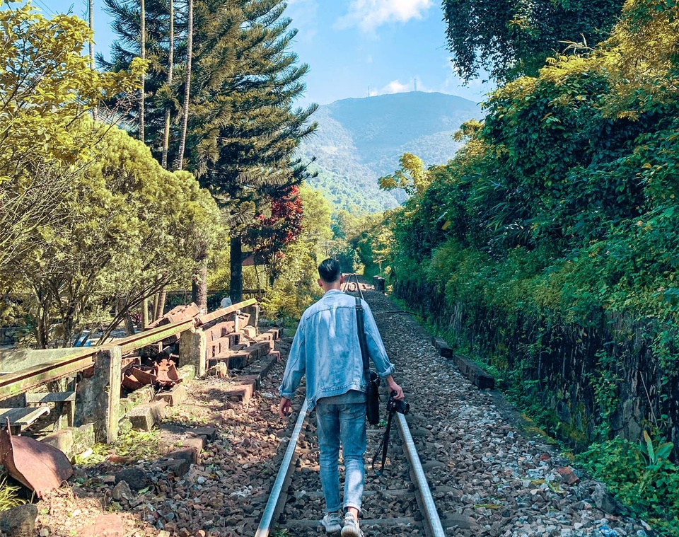 | Thiên nhiên trên đường đến cầu Vòm Đồn Cả thơ mộng và hùng vĩ tựa bước ra từ truyện cổ tích. Bạn có thể sống ảo với hàng cây đẹp mắt trải dài trên những đoạn đường ray uốn lượn. Khung hình này cũng được nhiều bạn trẻ lựa chọn để check-in khi đến đây. |