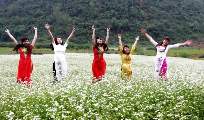 | Hoa tam giác mạch được một số hộ dân ở trong vùng gieo chủ yếu để lấy hạt xay thành bột làm bánh. Họ có thể bán bột cho du khách tới tham quan với giá 20.000 đồng một kg. |