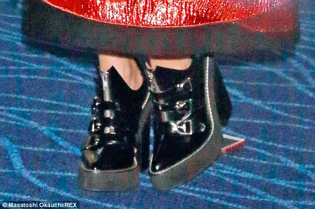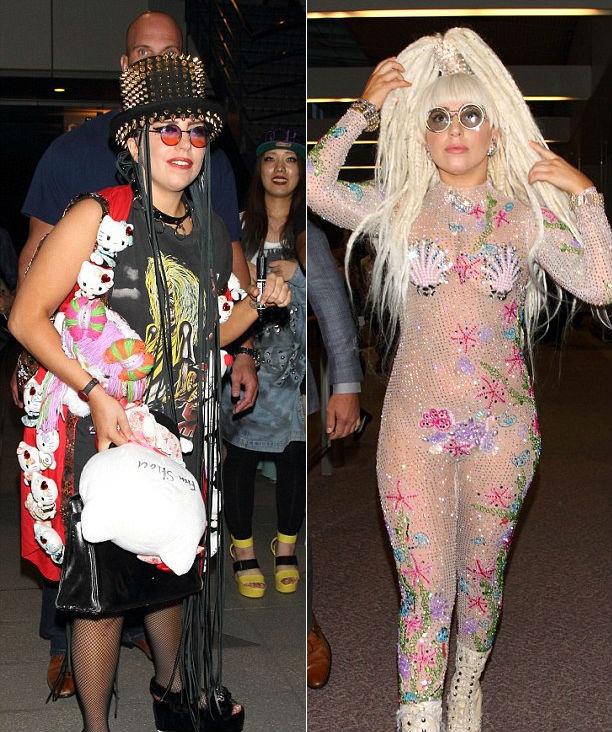 Mới đây, cánh săn ảnh bắt gặp chủ nhân bản hit "Bad romance" tại sân bay Haneda Airport, Tokyo với bộ trang phục và giày dép không giống ai.