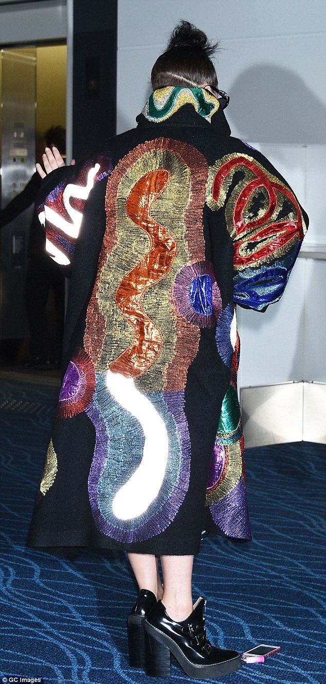 Tuy nhiên, trong hai ngày 13,14, mỗi lần xuất hiện chốn đông người, nữ ca sĩ tiếp tục khiến người hâm mộ choáng váng với style trang điểm "mắt đen, môi thâm" và trang phục khác người.