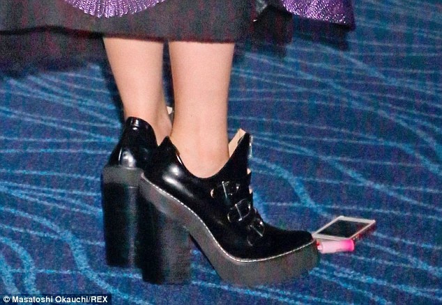 Và trong lúc không chú ý, nữ ca sĩ đã giẫm lên chiếc "telephone" của mình.