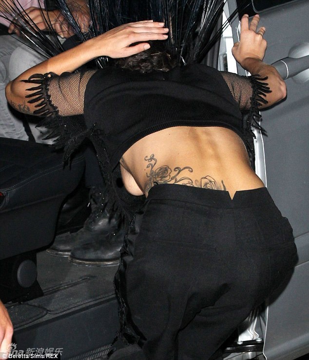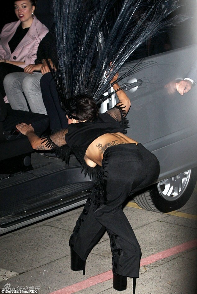 | Tư thế vào xe kỳ quặc còn khiến Lady Gaga lộ ngực. |