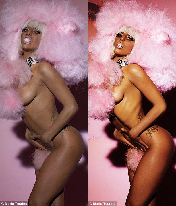 Trong tấm ảnh gốc, Lady Gaga có một làn da xám xịt, đôi chỗ có vết thâm và khá đẫy đà. Tuy nhiên, trong tấm ảnh mà người hâm mộ được nhìn thấy, Lady Gaga lại đẹp một cách hoàn hảo, những phần mỡ thừa đã được "cắt bỏ" để giúp cô ca sĩ có thân hình săn chắc hơn. Thậm chí, fan còn có thể thấy rõ những chiếc xương sườn lộ ra. Hình xăm đã phai màu của Lady Gaga cũng được chỉnh cho sắc nét hơn.