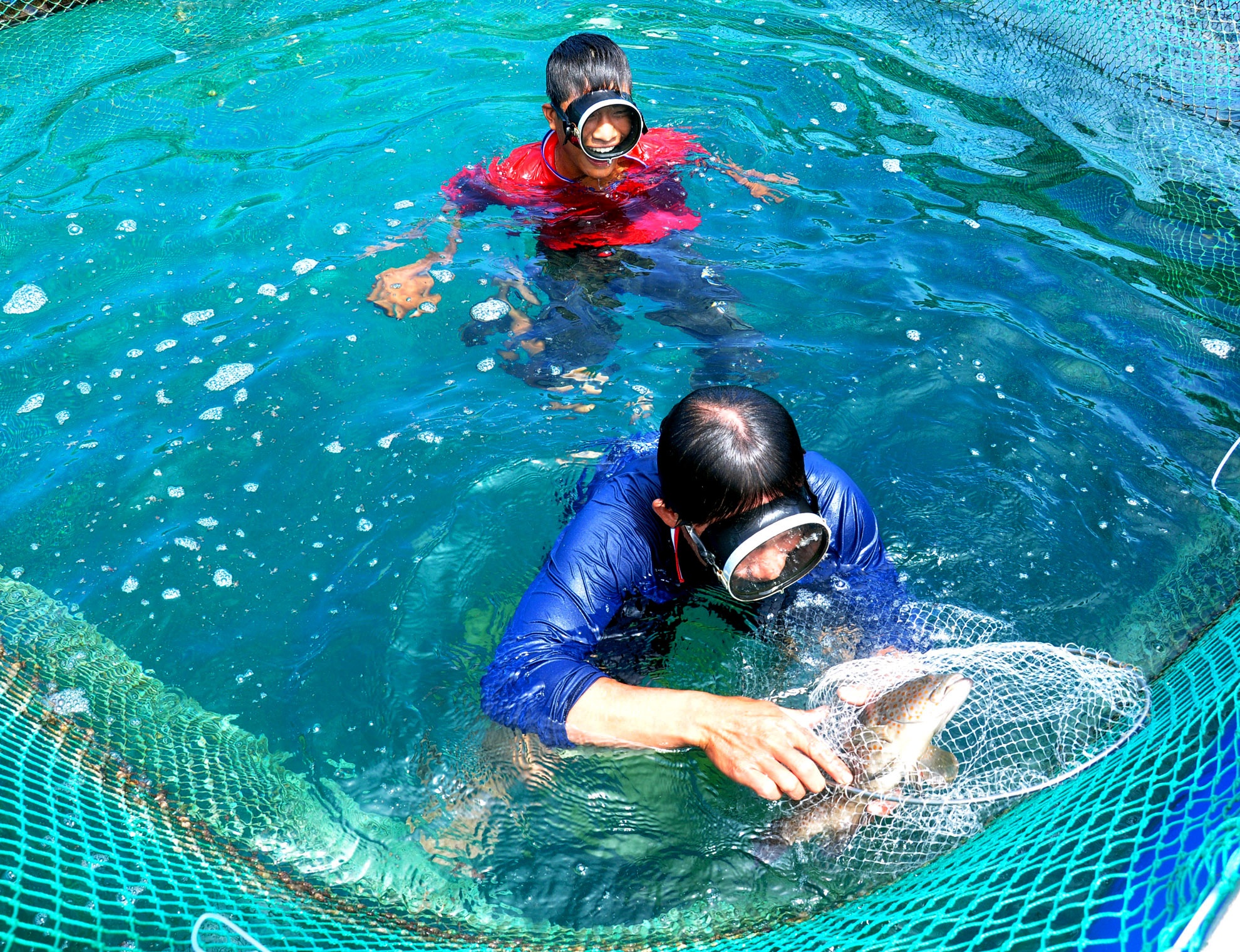 Ngư dân thường xuyên lặn ngụp vệ sinh lồng bè diệt vi khuẩn, vi sinh vật, dọn thức ăn thừa đảm bảo môi trường nước phòng ngừa dịch bệnh cho các loài thủy sản. Bên cạnh nuôi con tôm hùm, ngư dân nơi đây đã nuôi thí điểm thành công con cá bớp bán tại chỗ cho thương lái và các nhà hàng chế biến món ăn phục vụ khách du lịch đến Lý Sơn tham quan tăng đột biến thời gian gần đây.