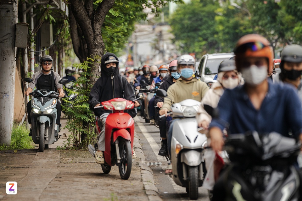 Vỉa hè luôn là lựa chọn "điền vào chỗ trống" quen thuộc của nhiều người lái xe máy. Khi đường phố dần đông đúc ở các khung giờ cao điểm, nhiều người chọn cách di chuyển lên vỉa hè để tiết kiệm thời gian.