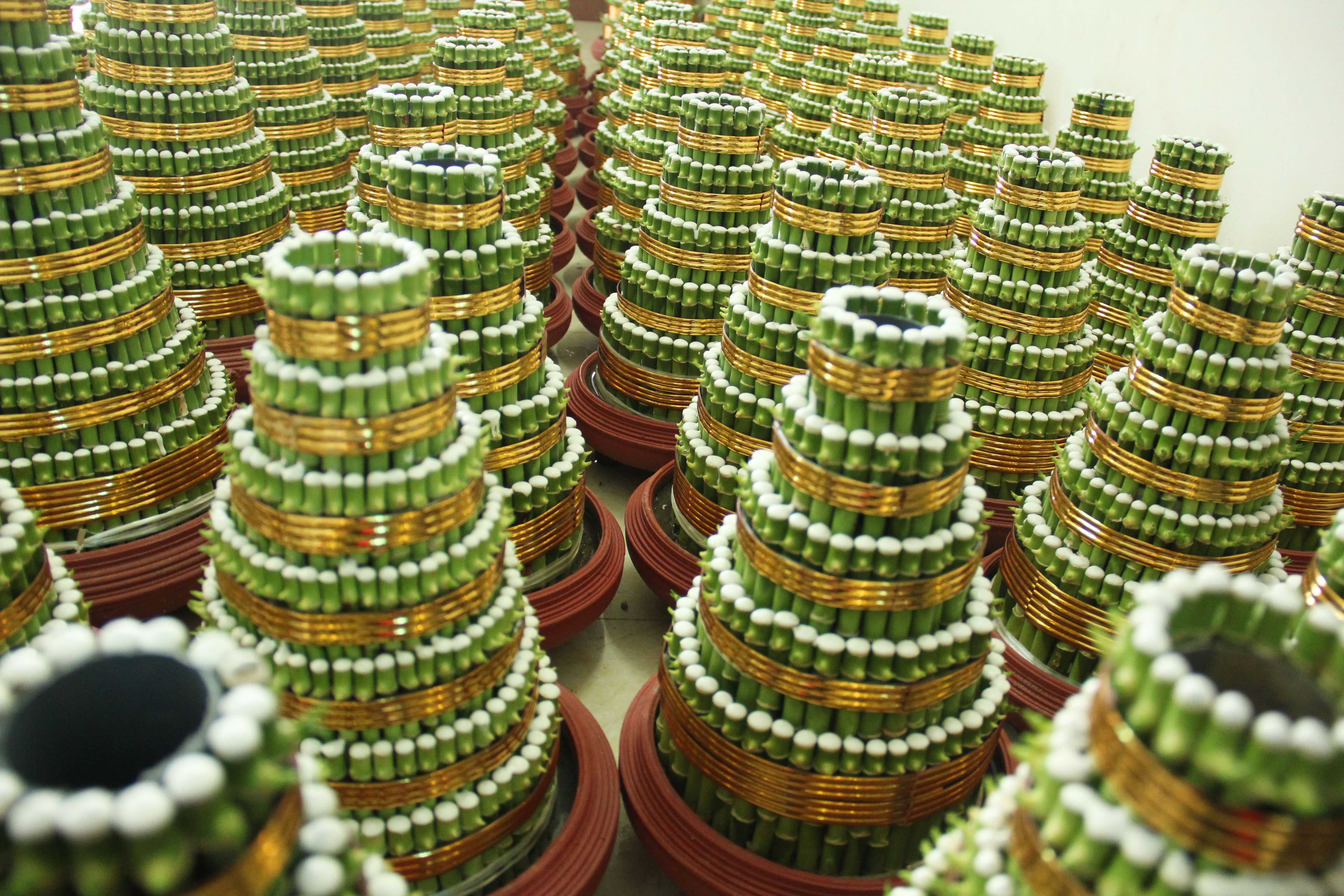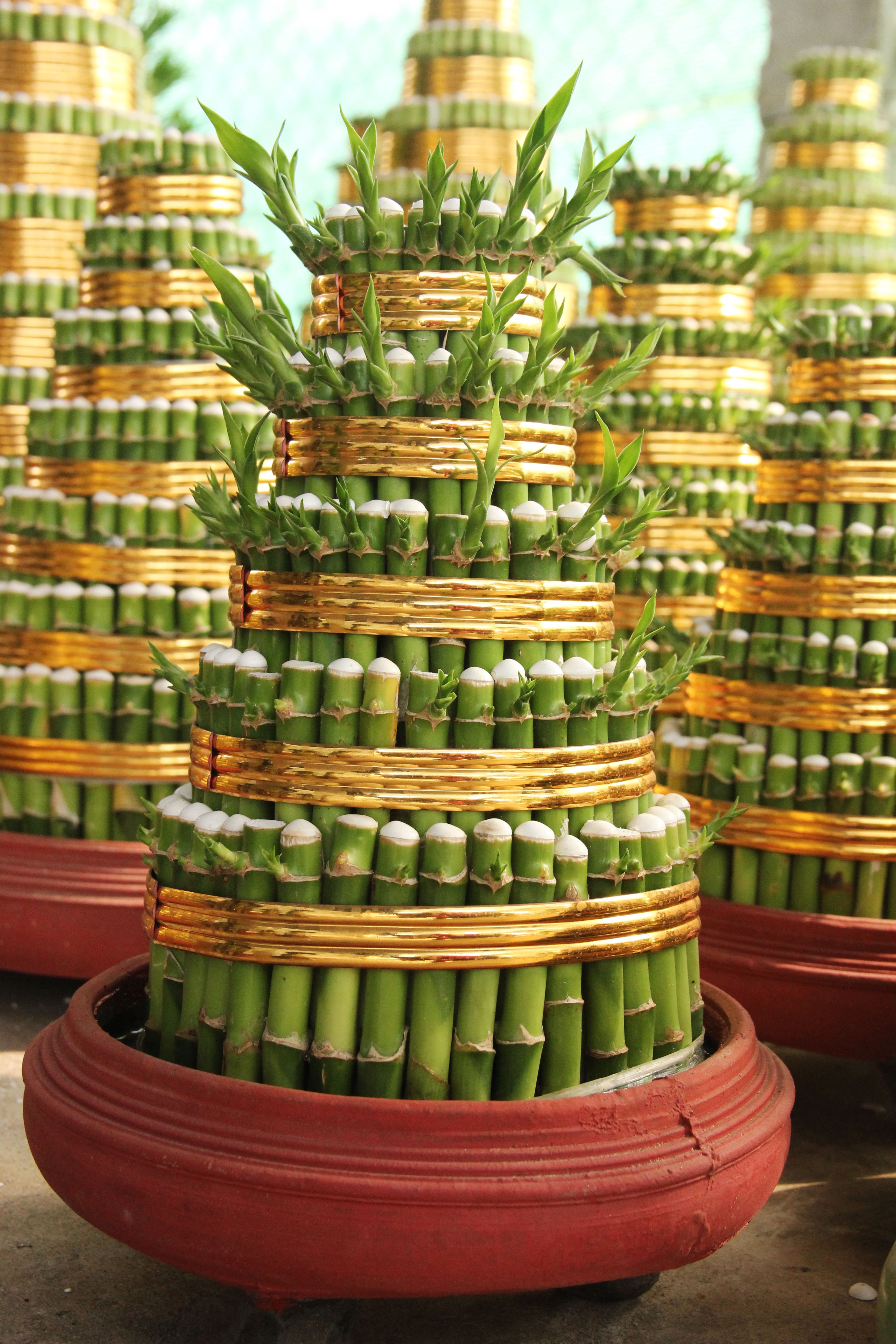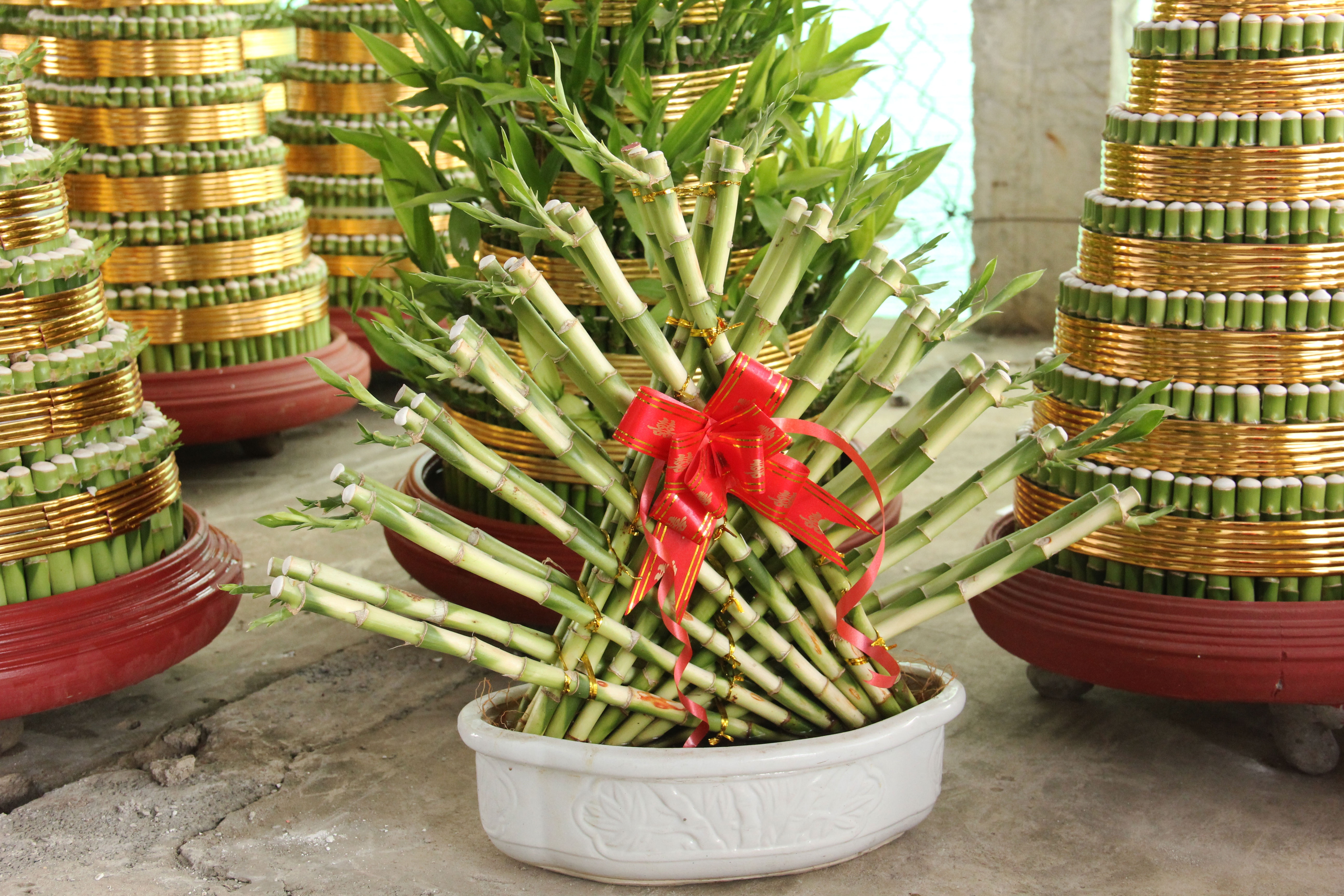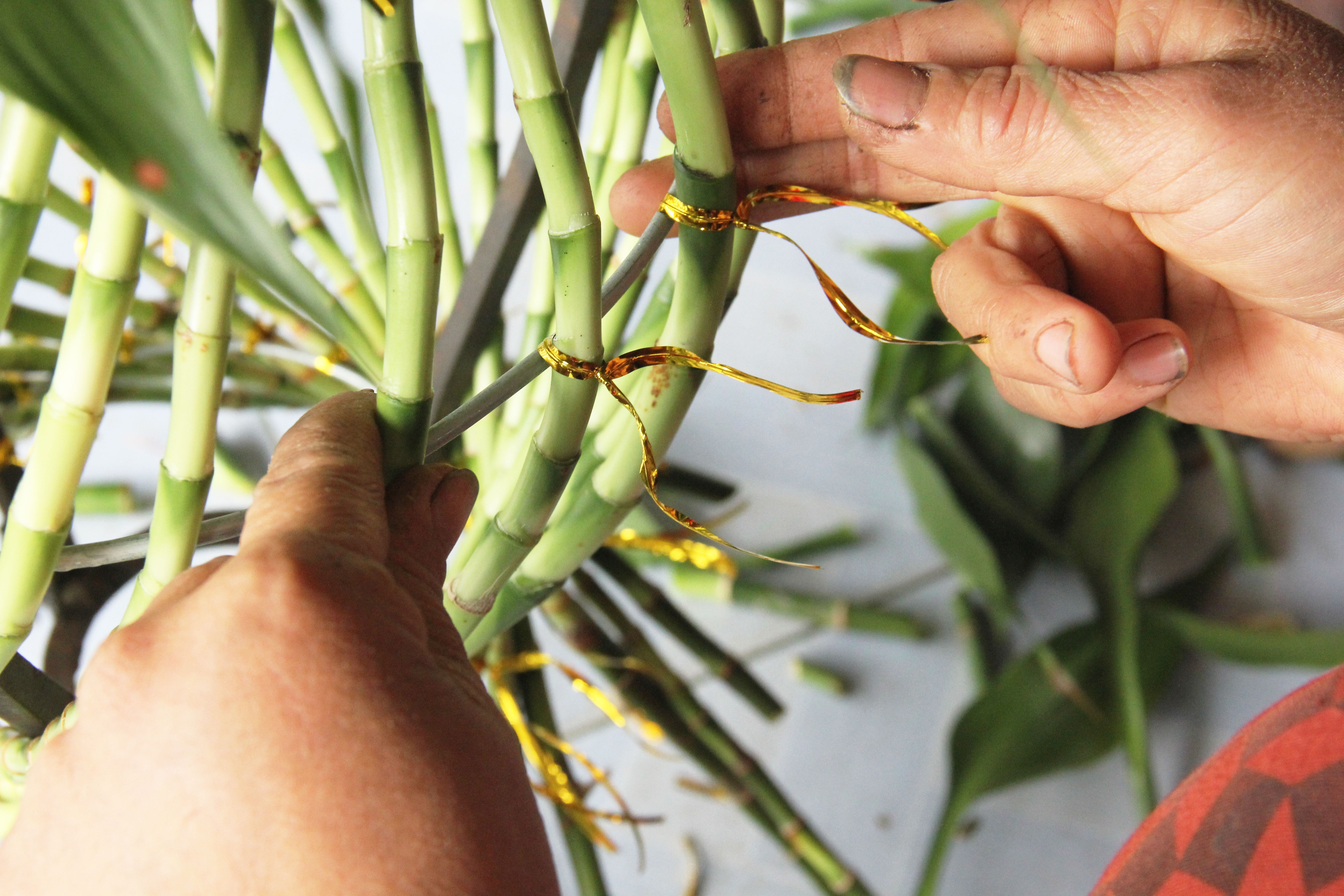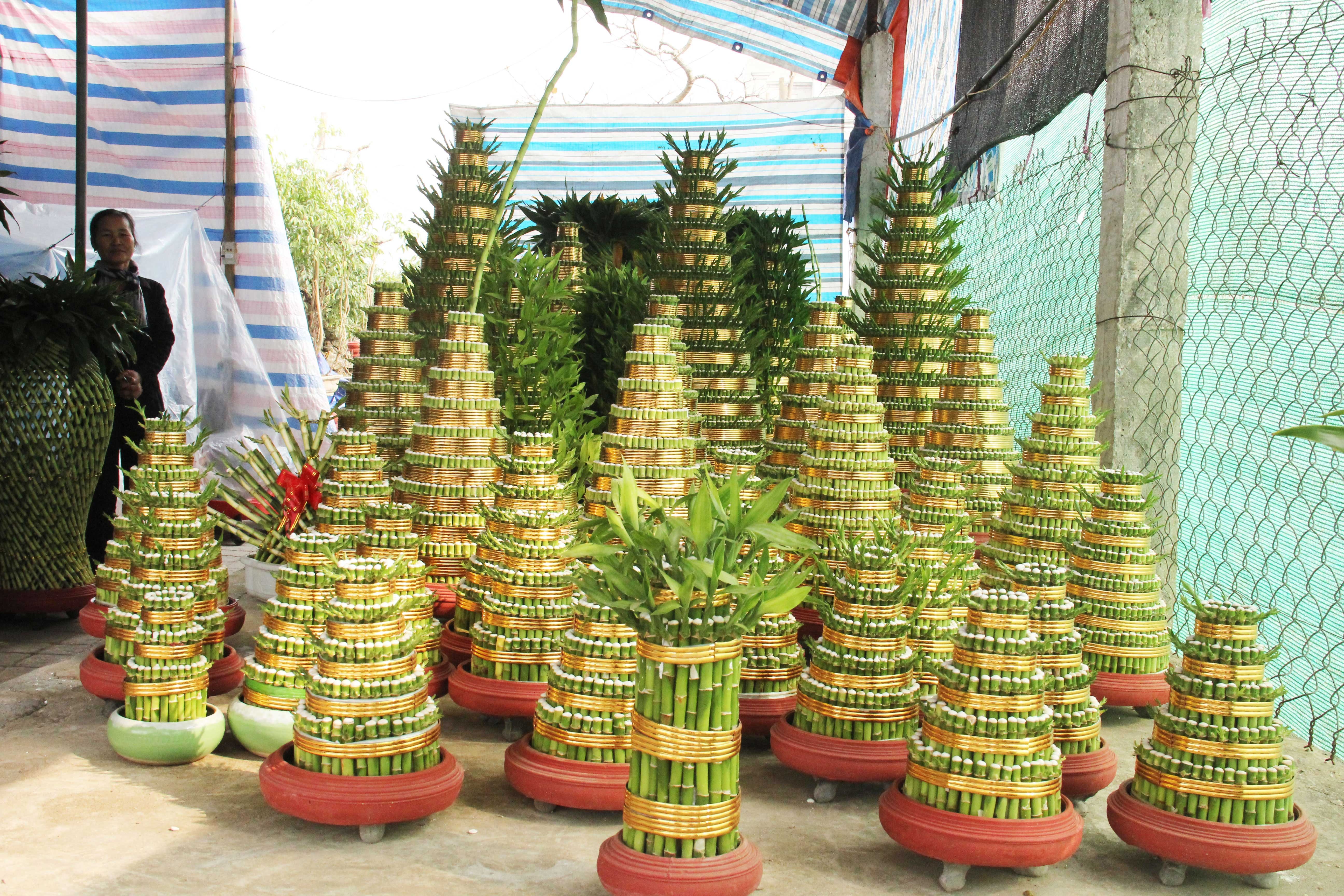 "Đầu tiên, phải chọn làm sao cho các thân cây to bằng nhau, già đều, để khi làm bình mới không bị gãy. Khi xếp cây, các mắt ở thân phải quay ra ngoài và theo một hướng nhất định. Riêng chậu phát lộc phải làm trước Tết khoảng 2-3 tháng, để cây có thời gian nảy lộc, cách làm cũng phức tạp hơn. Theo đó, giá cũng cao hơn 30.000-50.000 đồng/chậu", chị Cúc chia sẻ.