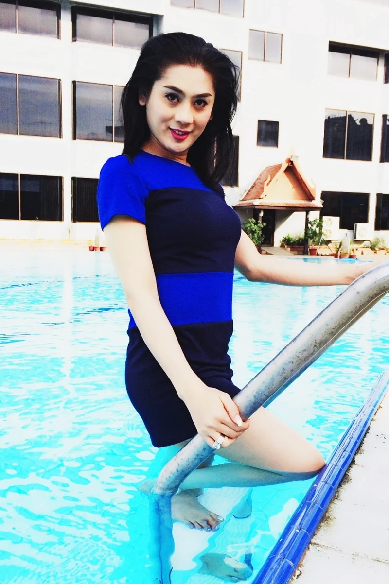 Trong loạt ảnh này, "người đẹp chuyển giới" không diện bikini mà chọn một bộ váy ngắn khá kín đáo.