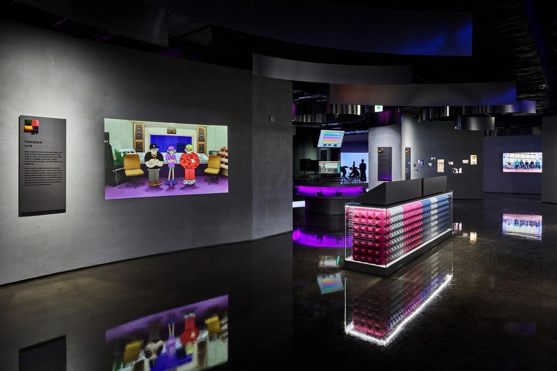 Khu phức hợp HYBE InsightMở cửa đón khách từ giữa năm 2021, khu phức hợp được biết đến với tên gọi "Bảo tàng BTS", là điểm dừng chân không thể bỏ qua của tín đồ âm nhạc xứ sở kim chi. Bảo tàng được công ty HYBE xây dựng trên diện tích 4.700 m2 với các màn hình chiếu khổng lồ cùng nhiều hiện vật, đồ lưu niệm và những món đồ của BTS, Tomorrow X Together (TXT), Enhypen và Seventeen. Ngoài sử dụng hệ thống ánh sáng công nghệ cao, HYBE Insight còn trưng bày outfit trình diễn của nghệ sĩ, tủ đựng cúp, tủ đựng album, những bức tranh hợp tác với James Jean. Du khách có thể mua vé vào cổng trên website HYBE Insight. Có hai mức phí 22.000 won cho vé thường và 25.000 won cho vé ảnh idol tự chọn. Ảnh: Bandwagon Asia. |