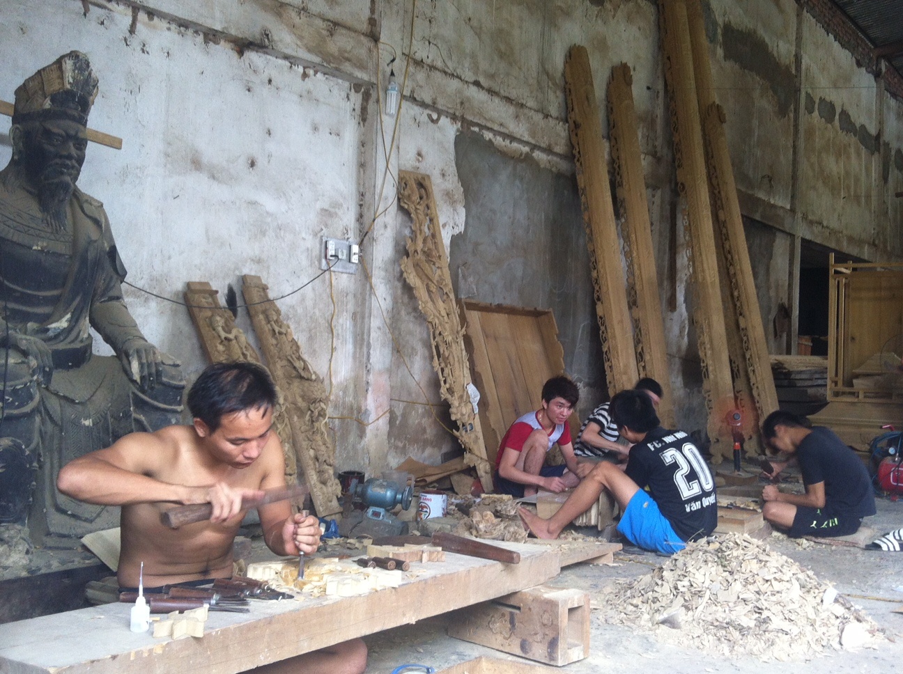 Gia đình anh chị Thiệp - Thắng đã dẹp quán cháo lòng, chuyển sang làm đồ thờ được gần chục năm nay. Quán cháo quê nhỏ bé của cha mẹ ngày xưa nay nhờ các con đổi nghề, đã trở thành ngôi nhà 4 tầng khang trang, diện tích gấp đôi gấp ba trước kia nằm ngay mặt đường tỉnh lộ dẫn vào làng nghề truyền thống đồ thờ, tượng phật Sơn Đồng. Nhà chỉ làm theo đơn đặt hàng của khách nhưng không lúc nào ngớt việc. Đặc biệt, 6 tháng cuối năm luôn là thời gian bận bịu nhất, hoạt động hết công suất nhưng năm nào cũng phải tới chiều 30 Tết mới trả hết hàng.
