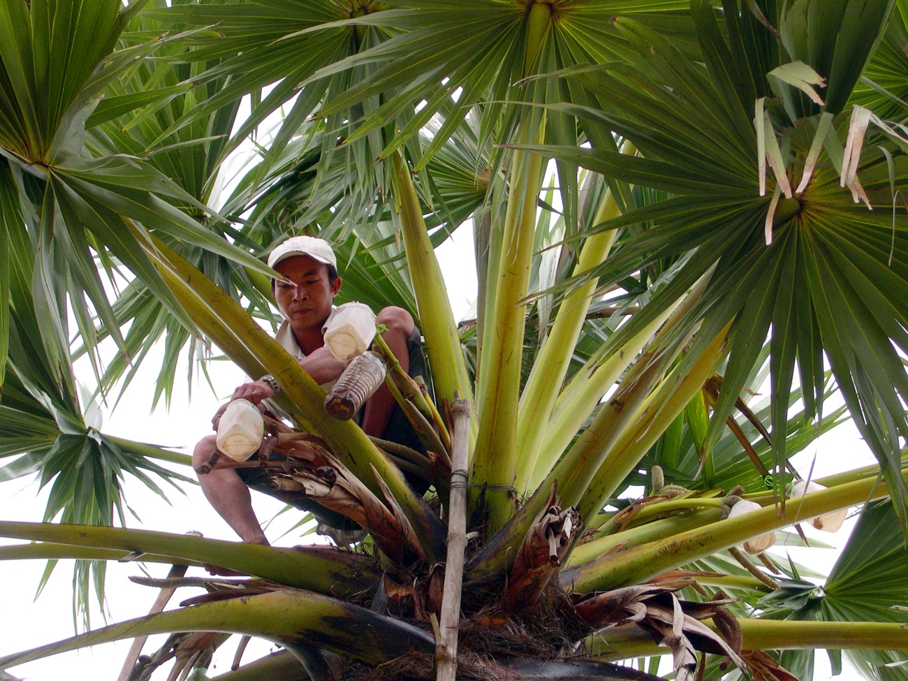Trèo cây lấy đường thốt nốt ở Bảy Núi, An Giang. Ảnh: Ngọc Trinh. |
