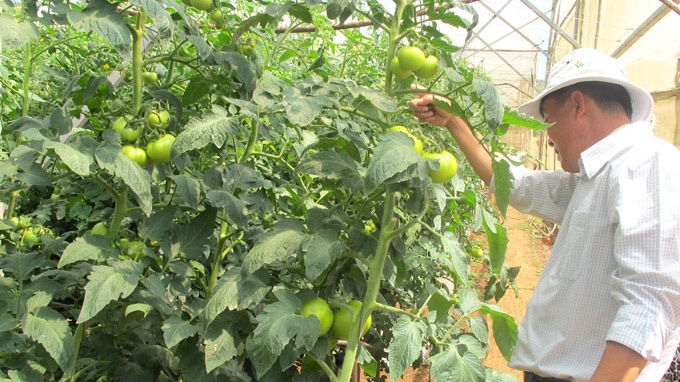 | Trang trại trồng cà chua công nghệ cao trên giá thể xơ dừa với hệ thống tưới nhỏ giọt của Công ty Phong Thúy (huyện Đức Trọng, tỉnh Lâm Đồng). |