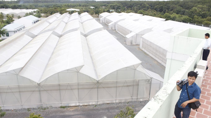 | Khu nhà màng khép kín với kỹ thuật tưới nhỏ giọt và phun sương tự động theo công nghệ nước ngoài được sử dụng để trồng dưa lưới, cà chua và dưa leo đạt tiêu chuẩn xuất khẩu tại khu nông nghiệp công nghệ cao TP.HCM. |