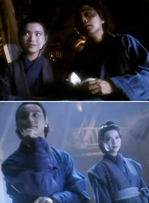 | Lam Khiết Anh đóng chung với cố ca sĩ - diễn viên Trương Quốc Vinh trong phim Bạch Phát ma nữ (1993). |