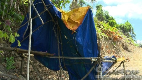 | Lâm tặc dựng lán giữa rừng để khai thác dài ngày. |