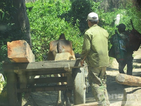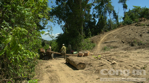 | Tiếng máy cưa gầm rú suốt ngày đêm. Cộ bò, xe máy, xe đầu kéo, xe tải... được “lâm tặc” sử dụng để tuồn hàng chục, hàng trăm m3 gỗ đi tiêu thụ mỗi ngày khiến cánh rừng tự nhiên chỉ còn lại những gốc cây trơ trọi. Cái lợi trước mắt đã khiến nhiều người tàn phá môi trường xanh bất chấp hậu quả. |