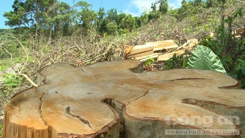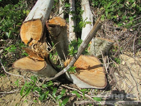 | Những cây lâu năm, to lớn bị "lâm tặc" cưa tận gốc. |