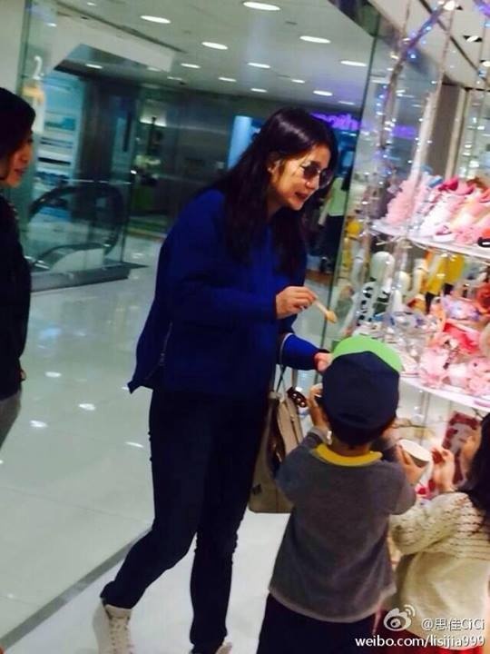 | Cũng trong hai ngày 30, 31/3, cánh săn ảnh bắt gặp cô nàng Triệu Vy cùng chồng con đi mua sắm. Đeo cặp kính mắt khá lớn đi che đi đôi mắt có nếp nhăn và bọng song Triệu Vy vẫn không giấu được những vết thời gian trên gương mặt. |