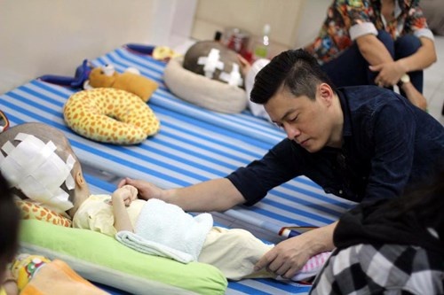 | Lam Trường đã không kìm được nước mắt trước trường hợp bé gái Trần Ngọc Hải Yến bị mắc bệnh não úng thủy, bị bỏ rơi ở cửa chùa từ lúc mới sinh. Hải Yến đã trải qua 3 cuộc mổ não nhưng bệnh tình vẫn không thuyên giảm. |