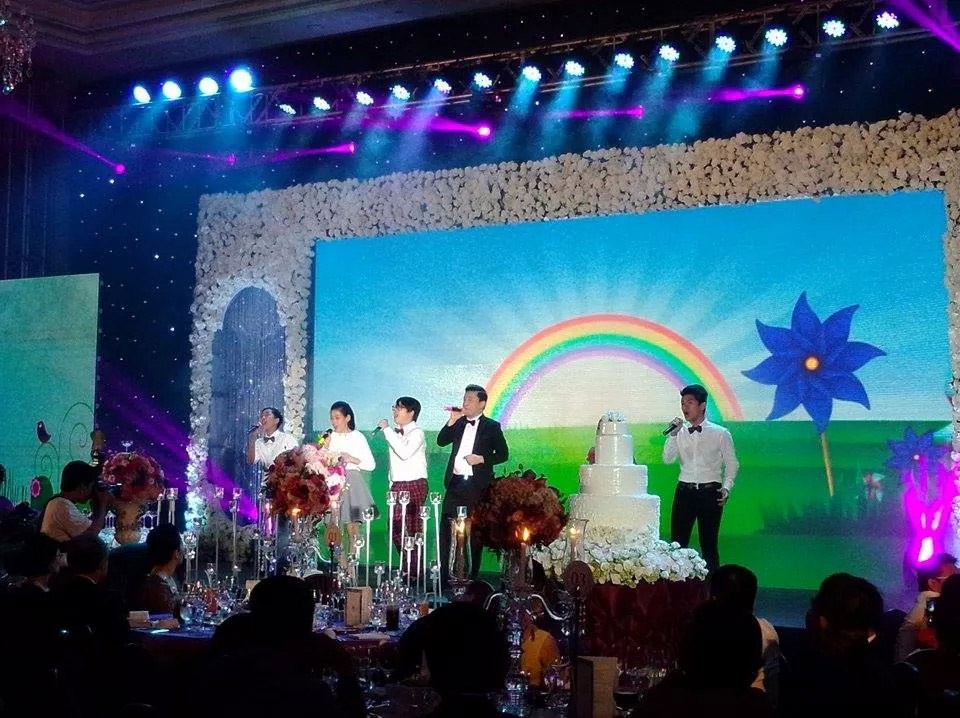 | Sân khấu liên tục thay đổi, tạo không gian cưới lãng mạn theo ý tưởng của anh Hai và bà xã. Mặc dù cưới lần thứ hai nhưng mọi thứ lại được Lam Trường chuẩn bị cầu kỳ, hoành tráng như cách để anh thể hiện tình cảm với Yến Phương. |