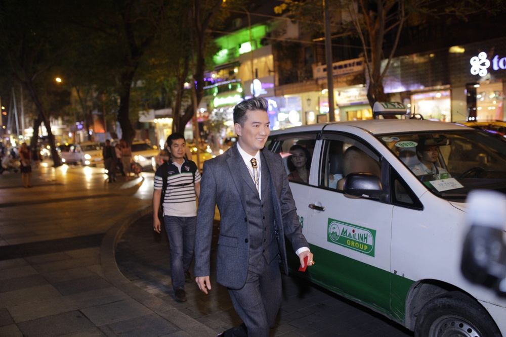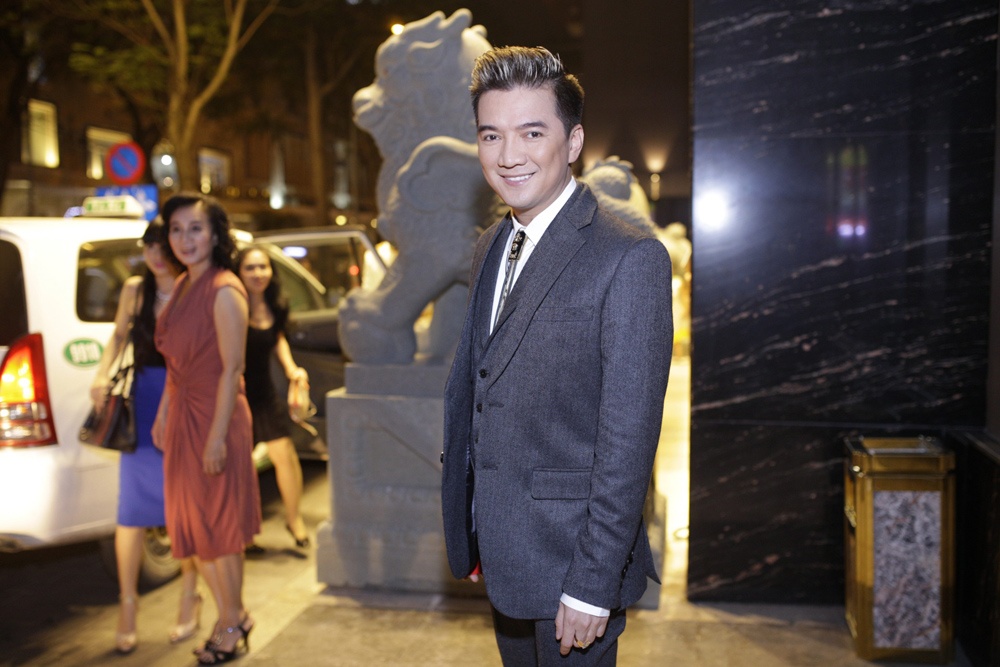 | Mới tổ chức họp báo tại Hà Nội và tham gia bế mạc Liên hoan phim Hà Nội tối 27/11, Đàm Vĩnh Hưng vội bay vào TP.HCM để tham dự tiệc cưới sang trọng của Lam Trường. Anh diện vest lịch lãm và đến từ rất sớm. |