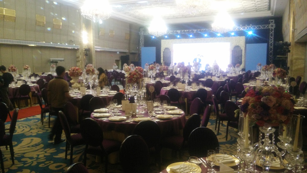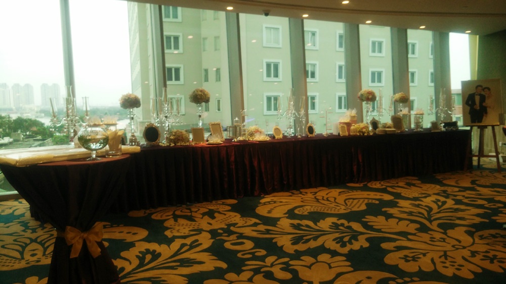 | Ngay từ chiều 28/11, đội ngũ nhân viên đã có mặt tại tầng 5 của tòa nhà sang trọng này để hoàn thiện việc trang trí, sắp xếp bàn tiệc. Theo dự tính, khách mời cho tiệc cưới tối nay khoảng 200 người với 20 bàn tiệc. Do muốn có hôn lễ mang tính riêng tư của bạn bè, đối tác công việc nên giọng ca Tình thôi xót xa đã tổ chức tại tòa nhà sang trọng bậc nhất Sài thành với sự bảo vệ nghiêm ngặt. Trước Lam Trường, nam ca sĩ Thanh Bùi cũng từng tổ chức đám cưới tại tòa nhà 40 tầng này. |