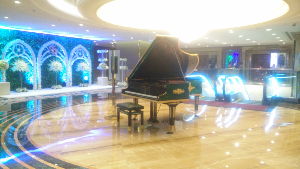 | Không gian tiệc cưới của Lam Trường và vợ trẻ vừa rộng vừa sang trọng. Ngay từ sảnh ra vào, anh Hai bố trí đặt một cây đàn piano đắt đỏ. Theo một nhân viên của tòa nhà, cây piano này có giá 20 tỷ. |