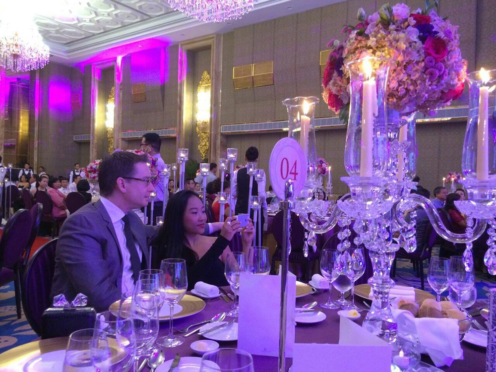 Sau lễ thành hôn, tối 28/11, anh Hai và vợ trẻ tổ chức tiệc cưới bí mật tránh ống kính truyền thông tại tòa nhà Time Square, TP.HCM.